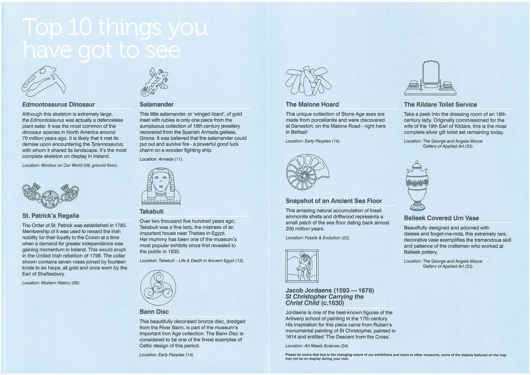 案内パンフ。地図だけでなく、見所10個を示してくれる親切設計 翼竜の飾り