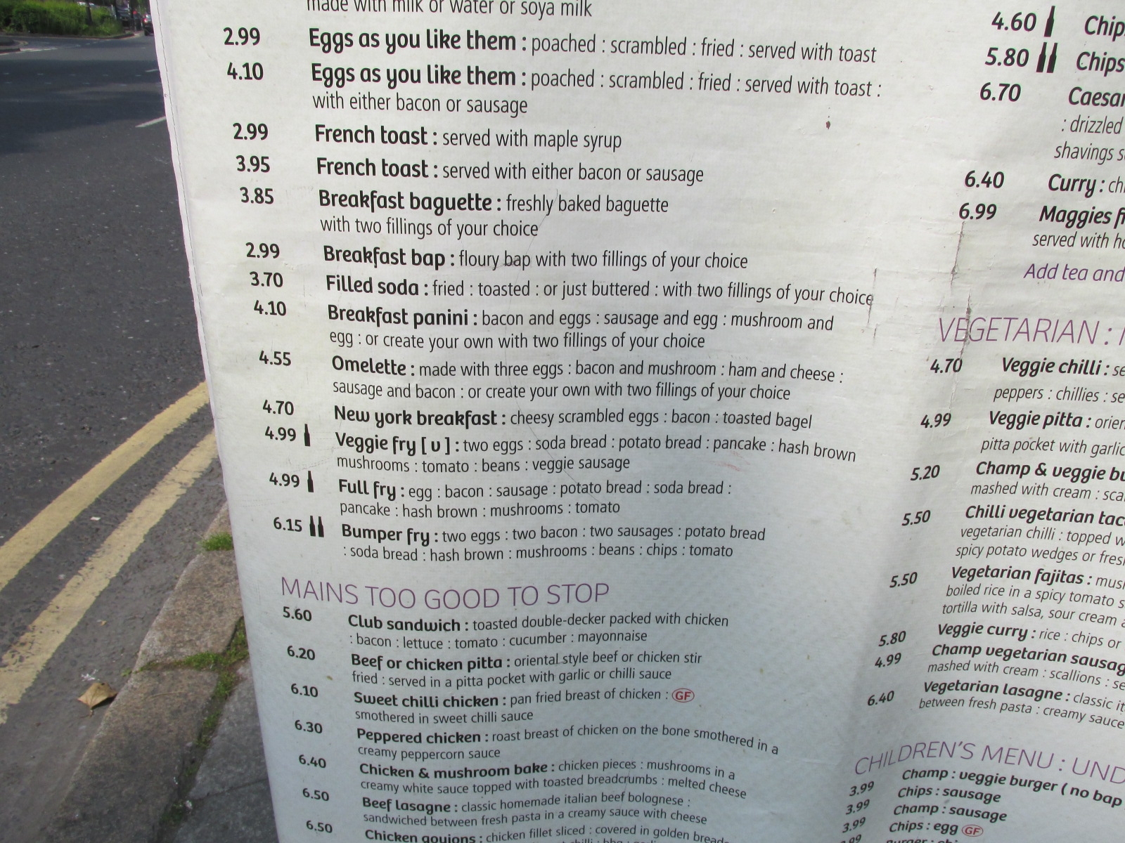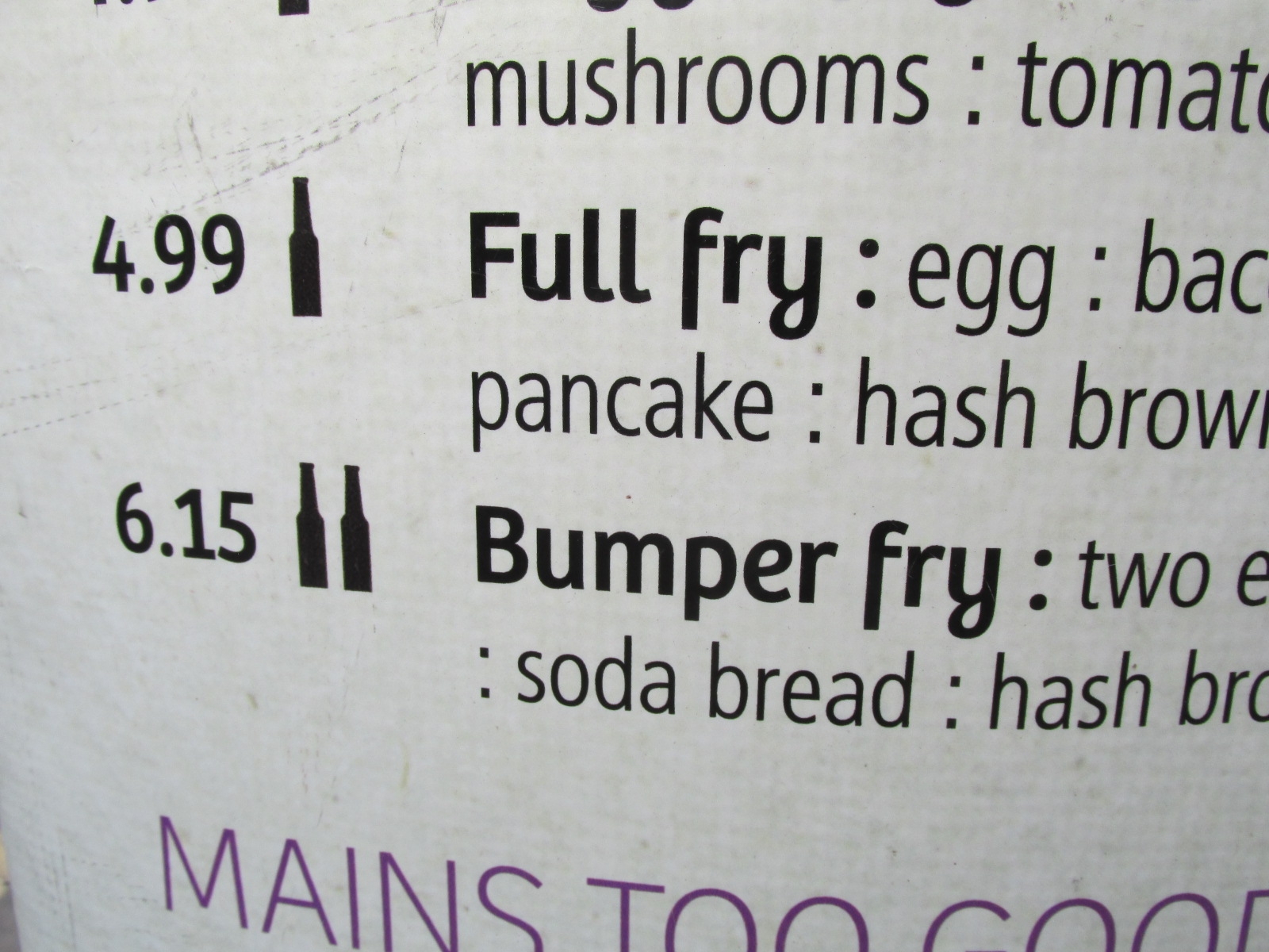 今回私が食べたのはBumper fry。これで6.15ユーロだから1000円こえません。これは安い。嬉しそうに食べたものの写真とメニュー写真を撮っていることから見て、このお値段には私も満足していたのではないかと思います。