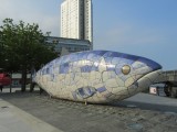 続いて、川沿いへ。ここは記憶にあります。怪しい魚のオブジェがあります。その名も、The Big Fish。そのまんまですね。日本人としては、なんという魚か、食べたら美味しいのかが気になりますが、ここはイギリス。Fish & Chipsにしか興味がないのでしょう。