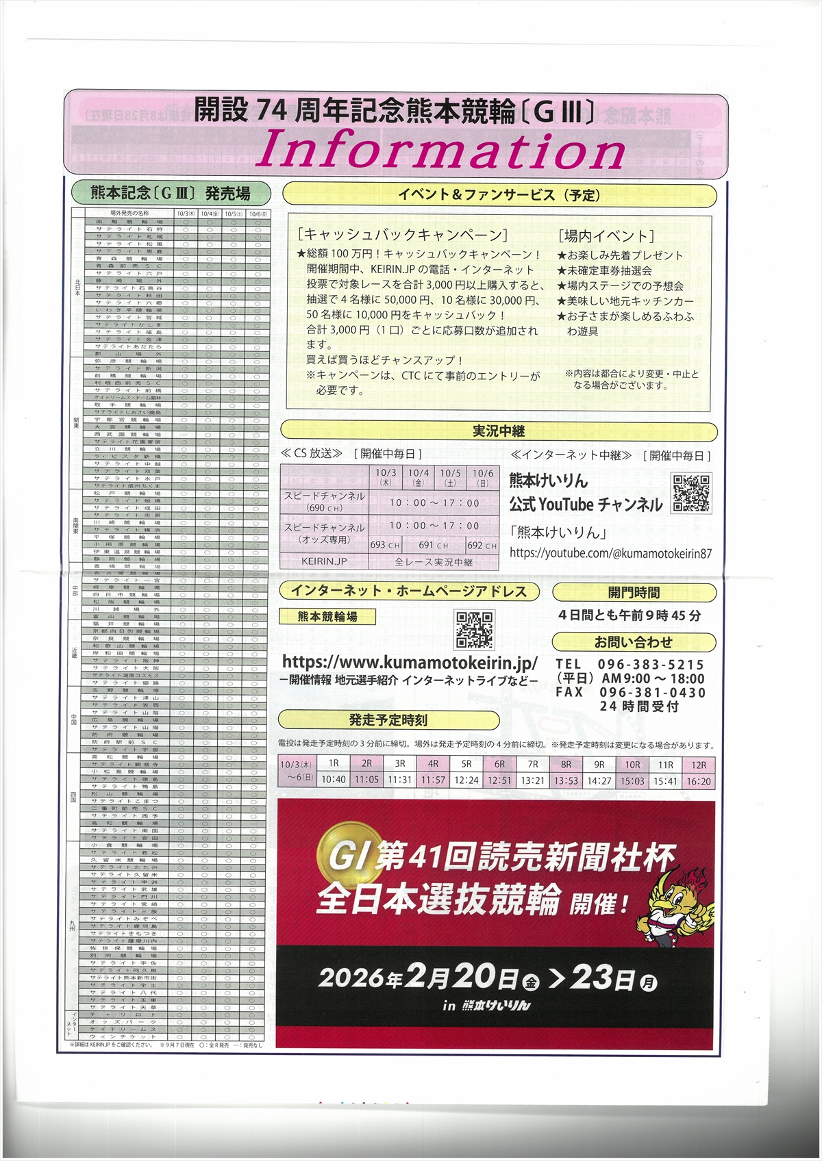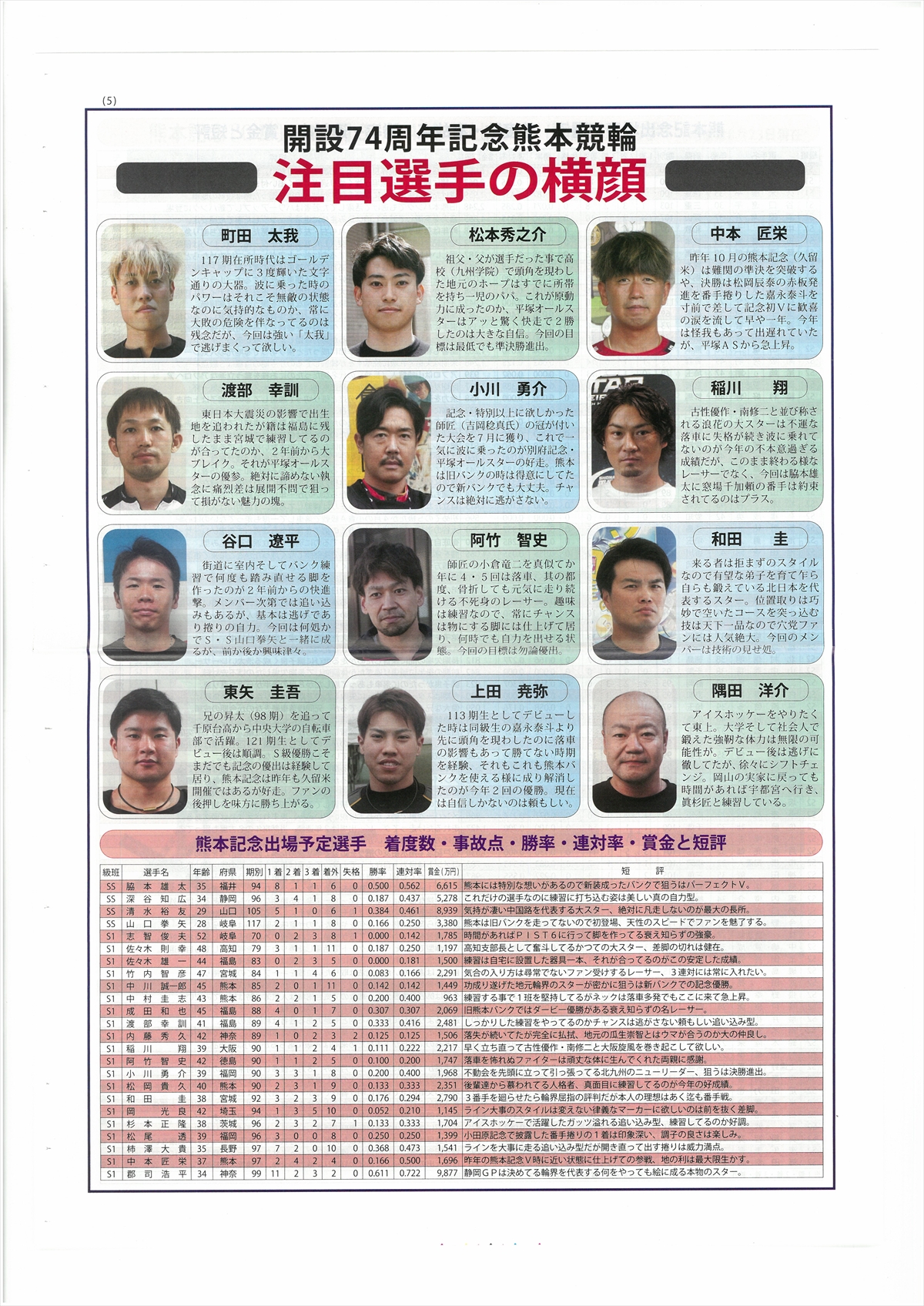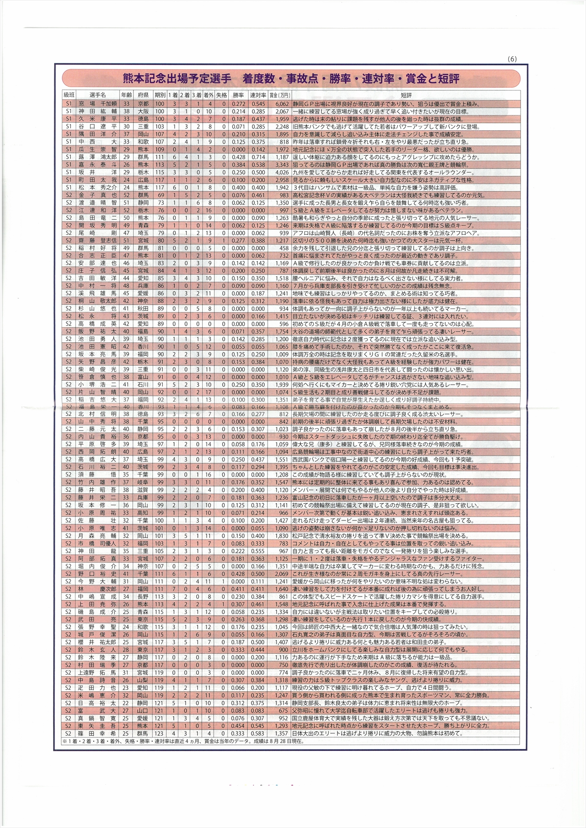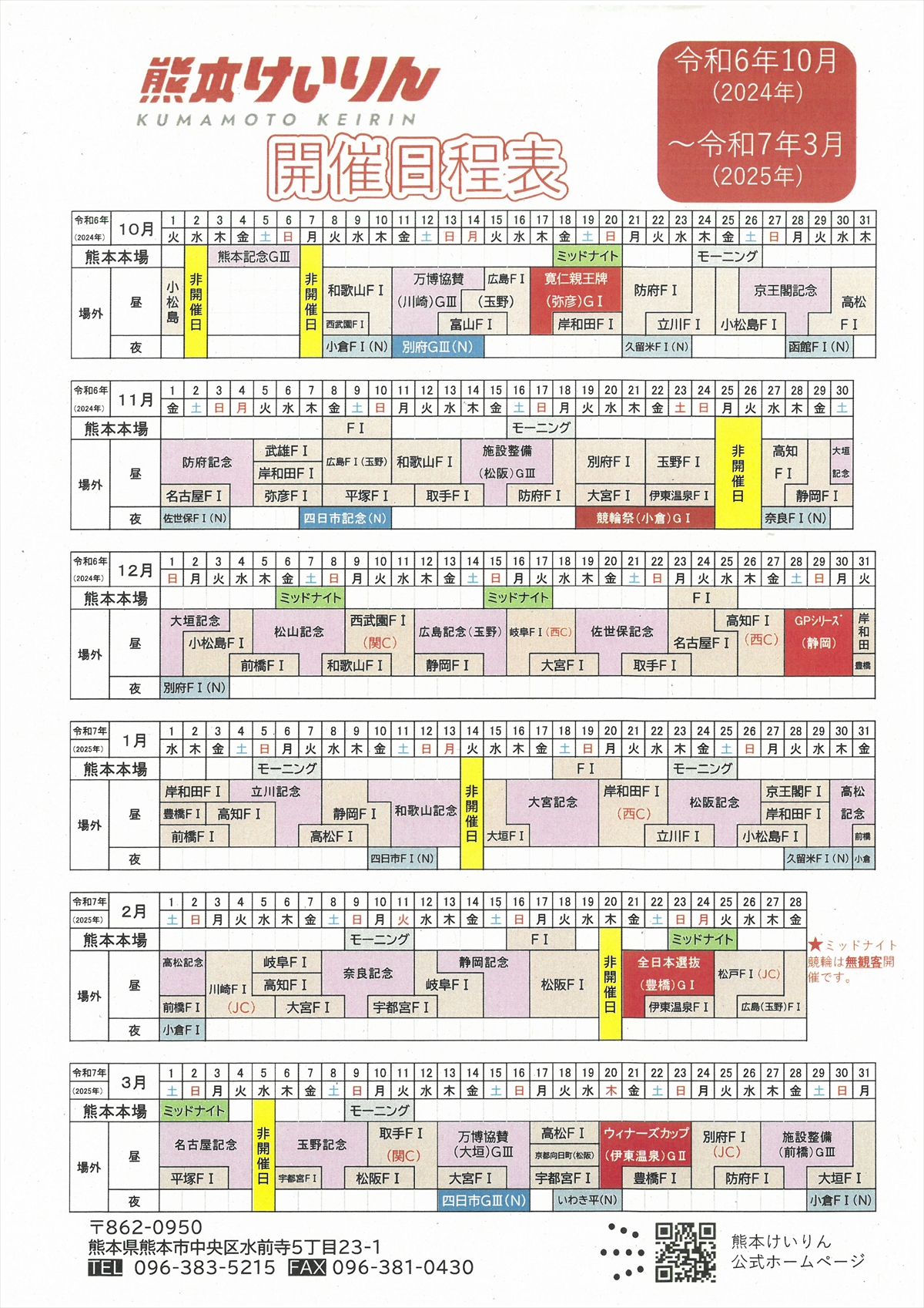 出走表 | カレンダー | 記念のパンフ | |||||