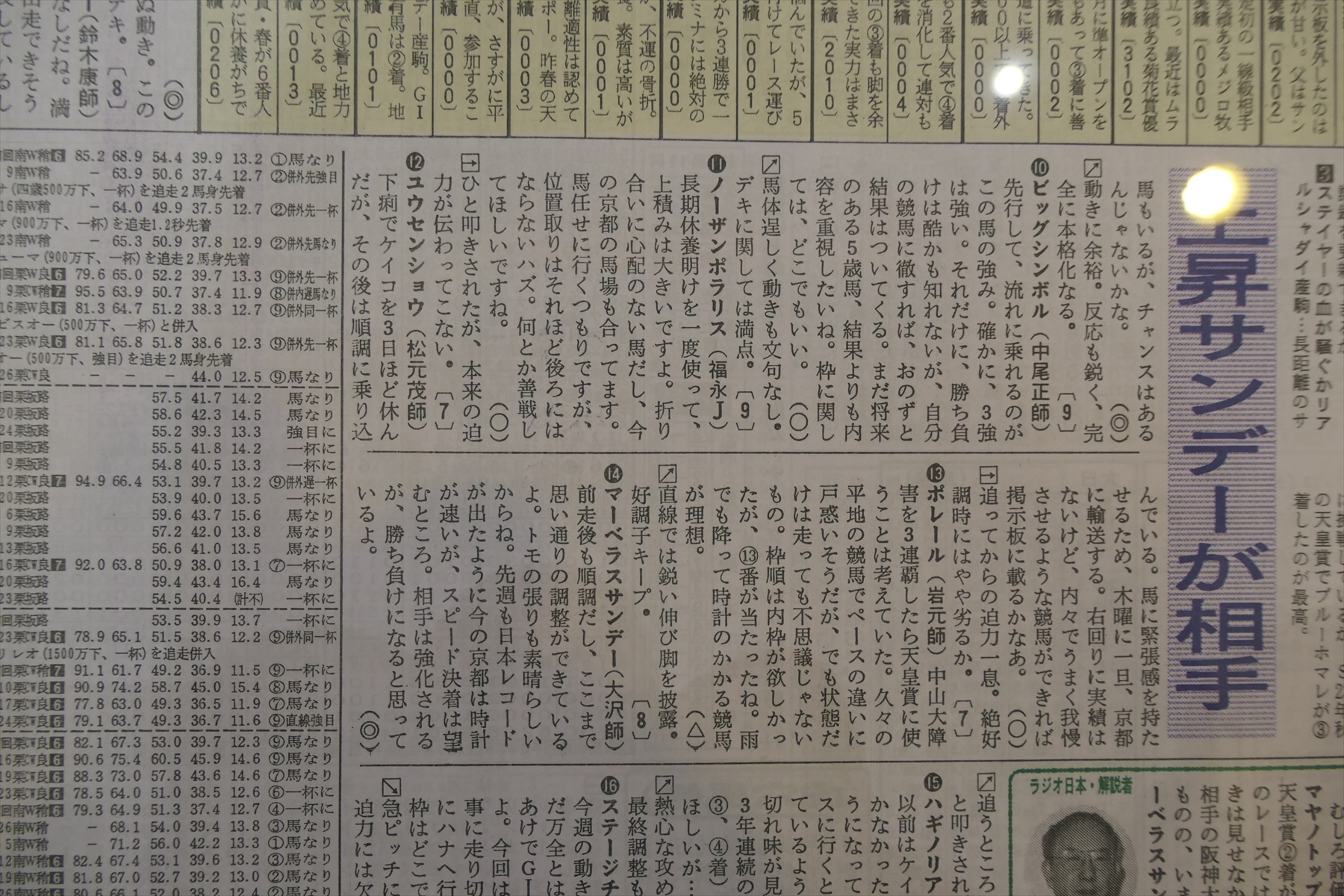 全然期待せずに見ていたら、ノーザンポラリスの天皇賞に関する展示もあったりして、こちら方面からも楽しめました。ありがたやありがたや。さすがにノーザンポラリスの嵐山Sはどこにもランクインしてなかったけど。