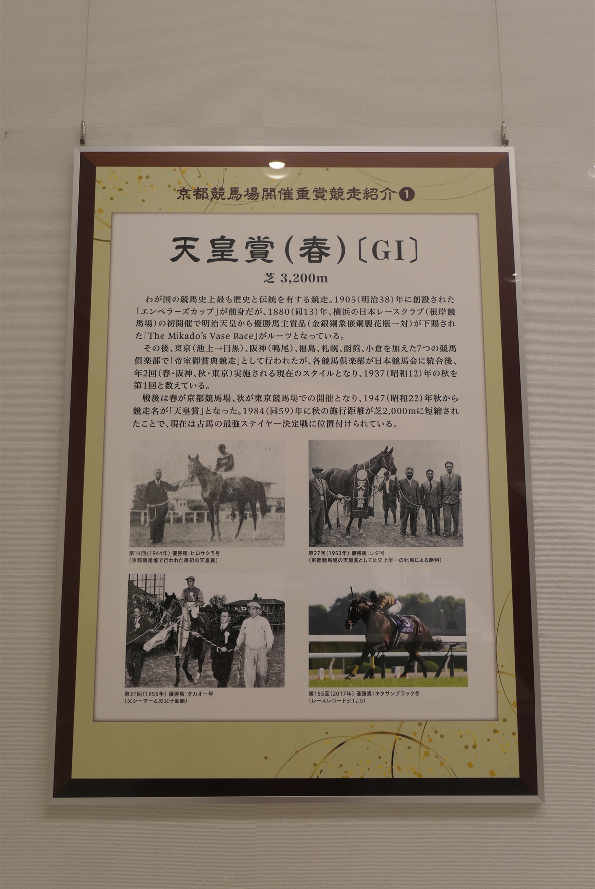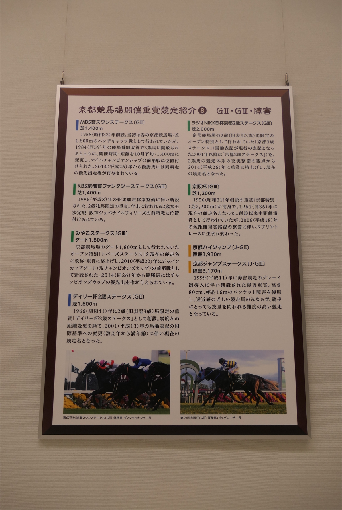 展示の構成としては、京都競馬場の通史、名勝負アンケート、重賞紹介という感じです。